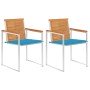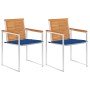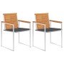 Estas sillas de jardín de madera están diseñadas para convertirse en el centro de atención de tu jardín o patio. Las sillas de comedor están hechas de madera maciza de acacia y acero inoxidable de alta calidad, lo que las hace muy duraderas, resistentes a la oxidación, robustas y fáciles de limpiar con un paño húmedo. El cojín incluido es más que un aporte práctico; también tiene una función decorativa. Siéntate para disfrutar de una deliciosa cena al aire libre o simplemente relájate y disfruta del clima con este clásico juego de sillas de jardín. Nota: Para prolongar la vida útil de los muebles de exterior, te recomendamos que los limpies con regularidad y no los dejes al aire libre sin protección innecesariamente.Limpiar: Usa una solución de jabón suaveAlmacenamiento: Si es posible, guarda el producto en un lugar fresco y seco en el interior. Si el producto se almacena al aire libre, protégelo con una funda impermeable. Limpia y seca el exceso de agua o nieve de las superficies planas después de una lluvia o nevada. Permite la ventilación para evitar daños relacionados con la humedad.