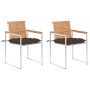 Estas sillas de jardín de madera están diseñadas para convertirse en el centro de atención de tu jardín o patio. Construido con teca duradera, este mueble ha sido curado, secado al horno y luego lijado para darle una apariencia muy suave. La madera de teca es conocida por su excepcional solidez y resistencia a la intemperie, lo que la hace mucho más adecuada para muebles de jardín que cualquier otro tipo de madera. La madera de teca es la elección perfecta si deseas comprar un mueble de jardín duradero. La estructura de acero inoxidable de alta calidad también los hace altamente duradero, resistentes al robusto óxido. El cojín incluido es más que un práctico aporte; también tiene una función decorativa. Siéntate para disfrutar de una deliciosa estancia en el exterior o simplemente relájate y disfruta del clima con este clásico juego de sillas de jardín. Nota: Para prolongar la vida útil de los muebles de exterior, te recomendamos que los limpies con regularidad y no los dejes al aire libre sin protección innecesariamente.Limpiar: Usa una solución de jabón suaveAlmacenamiento: Si es posible, guarda el producto en un lugar fresco y seco en el interior. Si el producto se almacena al aire libre, protégelo con una funda impermeable. Limpia y seca el exceso de agua o nieve de las superficies planas después de una lluvia o nevada. Permite la ventilación para evitar daños relacionados con la humedad.
