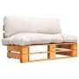 Nuestro sofá con palets de jardín será una opción ideal para relajarte y disfrutar del buen tiempo.Con un diseño de palets atemporal, el sofá de madera añadirá un toque de encanto rústico a tu patio, jardín o salón. Hecho de madera de pino impregnada, el juego al aire libre es duradero y resistente a la intemperie. Este sofá de patio tiene una construcción sólida y requiere poco mantenimiento. Entregado con cojines suaves y gruesos, nuestro sofá de jardín de 2 plazas te brindará la máxima comodidad. Este sofá de jardín es fácil de montar.Ten en cuenta que la madera es un producto natural y puede presentar imperfecciones.