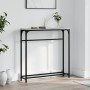 Añade un toque de elegancia a la entrada, el salón o el pasillo con esta elegante mesa consola. Material duradero: La madera de ingeniería tiene una calidad excepcional, con una superficie lisa, y también se caracteriza por su fuerza, estabilidad y resistencia a la humedad. Hecha de madera de ingeniería, la mesita de sofá es fácil de limpiar.Tablero resistente: El robusto tablero de la mesa de recibidor es perfecto para colocar fotos enmarcadas, macetas y otros objetos decorativos.Patas ajustables: Cuatro patas ajustables con almohadillas de plástico mantienen la mesa del pasillo equilibrada en terrenos irregulares y aumentan la estabilidad.Estructura metálica: La estructura metálica añade un estilo industrial a la casa, además de garantizar su durabilidad y estabilidad. Advertencia:Para evitar que vuelque, este producto debe usarse con el dispositivo de fijación a la pared incluido.