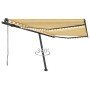 ¡Crea un lugar encantador y fresco en tus espacios exteriores con este toldo retráctil! Este toldo para exteriores está construido con una estructura de aluminio con recubrimiento en polvo resistente a la oxidación, lo que lo hace ligero pero robusto. La tela del toldo independiente está hecha de poliéster de alta densidad con revestimiento de PU, resistente a los rayos UV y al agua. Además, el ángulo y la altura se pueden ajustar según tus preferencias. La robusta base se puede girar 360 grados, lo que proporciona las máximas necesidades de ajuste. Puedes abrir y retraer fácilmente el toldo retráctil automático con el control remoto incluido. Además, la manivela larga puede controlar el toldo del patio sin problemas. También está equipado con un sensor de viento que puede cerrar tu toldo automáticamente en días ventosos. Además, las luces LED proporcionan una iluminación que ahorra energía durante la noche.