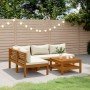 Muebles de jardín 7 pzas cojines crema madera maciza de acacia