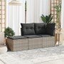 Set de sofá de jardín 3 pzas y cojines ratán sintético gris