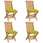 Sillas de jardín 4 uds madera maciza de teca con cojines azules