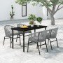 ¡Crea una estética atractiva y cohesionada en el espacio al aire libre de tu casa con este juego de comedor para jardín! Este juego de comedor de jardín está hecho de una estructura de acero con recubrimiento en polvo, lo que lo hace robusto y estable para el uso diario al aire libre. La superficie de vidrio liso es fácil de limpiar con un paño húmedo y es perfecto para colocar comida, bebidas y otros artículos decorativos. Las sillas de jardín están hechas de ratán de PVC, lo que las hace duraderas y resistentes a las inclemencias del tiempo y a los rayos UV. Además, cada asiento viene con un cojín grueso acolchado extraíble para mayor comodidad en tu tiempo de descanso. Nota: Para prolongar la vida de tus muebles de exterior, te recomendamos que los protejas con una funda impermeable.
