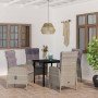Juego de comedor para jardín 5 piezas con cojines gris y negro
