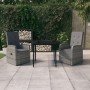 ¡Este elegante juego de comedor para jardín está destinado a ser el centro de atención del jardín o patio! ¡Es una opción genial para comer o relajarse al aire libre! Las estructuras de acero con recubrimiento en polvo hacen que la mesa y las sillas sean robustas y estables para usar a diario en exteriores. Gracias al ratán PE resistente al agua, las sillas son fáciles de limpiar y resistentes. El respaldo se reclina tirando del botón del lateral. Gracias a la construcción ligera, son fáciles de mover. Los cojines de asiento acolchados también dan un plus de comodidad. Las fundas de poliéster apernas necesitan cuidados y se pueden quitar para lavarlas. Asimismo, la lisa superficie de vidrio se limpia fácilmente con un paño húmedo y es perfecta para colocar comida, bebida y otros artículos decorativos. Nota: Para prolongar la vida de tus muebles de exterior, te recomendamos que los protejas con una funda impermeable.