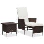 Este moderno juego de muebles de jardín proporciona una comodidad óptima para sentarte para disfrutar del buen tiempo y relajarte en el jardín o el patio. El sillón y la mesa de centro, hechos de ratán PE, son resistentes, fáciles de limpiar y aptos para el uso diario al aire libre. Este conjunto de muebles de jardín tiene una estructura de acero con recubrimiento en polvo, robusta y estable para años de relajación. Los cojines acolchados densamente brindan una cómoda experiencia de asiento. Puedes relajarte con mayor comodidad, gracias a los reposapiés. La mesa incluida es ideal para tener a tu alcance fruteros, bebidas, comida y otros elementos decorativos. Nota: Recomendamos cubrir el aparato bajo la lluvia, la nieve y las heladas para prolongar su vida útil.