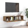 Este mueble de TV es un aporte decorativo y práctico para tu decoración. Material robusto: La madera contrachapada tiene una calidad excepcional, con una superficie lisa y también cuenta con fuerza, estabilidad y resistencia a la humedad.Espacioso almacenaje: El set de muebles de TV colgantes ofrece un amplio espacio de almacenaje para guardar mandos a distancia, revistas, DVD u otros artículos.Estilo moderno: ¡Este armario para equipos de música dan un estilo moderno a tu casa! El moderno diseño posee líneas limpias, aspectos minimalistas y luz natural como parte del estilo de interiorismo. Nota:Los tornillos y los tacos para el interior de la pared no están incluidos. Busca y utiliza tornillos y tacos adecuados para tus paredes. Si no lo tienes claro, busca asesoramiento profesional. Lee y sigue cada paso de las instrucciones cuidadosamente.Cada producto viene con un manual de montaje en la caja para facilitar el montaje.