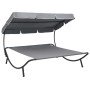 Esta tumbona doble, que incluye un gran dosel, llamará la atención dondequiera que se coloque. Es una opción perfecta para relajarse, o para divertirse con tu familia en el jardín, en el patio o en la playa. Fabricada en tela oxford resistente a la intemperie, la tumbona se puede utilizar al aire libre durante todo el año. La estructura de acero con recubrimiento en polvo brinda una gran estabilidad y garantiza a la tumbona una larga vida útil y una excelente durabilidad. La capota, hecha de poliéster repelente al agua, sin duda ofrecerá una experiencia de tumbado óptima. La tumbona para dos personas te proporciona sombra con su gran dosel. Nuestra tumbona doble es una combinación perfecta de estilo y funcionalidad. Nota: Para prolongar la vida de tus muebles de exterior, te recomendamos que los protejas con una funda impermeable.