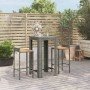 Mesa bar y taburetes jardín 5 pzas madera acacia ratán PE negro
