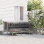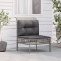 Set de muebles de jardín 3 pzas y cojines ratán sintético gris