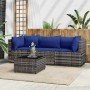 Juego de jardín con cojines 4 piezas ratán sintético negro