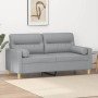 Sofá de 2 plazas con cojines tela gris claro 120 cm