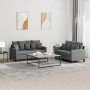 Este juego de sofás es un lugar excelente para charlar, leer, ver la televisión o simplemente relajarse. Está pensado para ser el centro de atención de la casa. Tela duradera: La tela posee un aspecto sencillo y limpio, además de ser transpirable y duradera.Estructura robusta y estable: La estructura de madera contrachapada y metal del sofá garantiza su solidez y estabilidad. Cómodo asiento: El sofá es muy cómodo gracias al asiento con relleno, los reposabrazos y la almohada trasera.