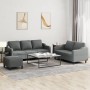 Este juego de sofás es un lugar excelente para charlar, leer, ver la televisión o simplemente relajarse. Está pensado para ser el centro de atención de la casa. Tela duradera: La tela posee un aspecto sencillo y limpio, además de ser transpirable y duradera.Estructura robusta y estable: La estructura de madera contrachapada y metal del sofá garantiza su solidez y estabilidad. Cómodo asiento: El sofá es muy cómodo gracias al asiento con relleno, los reposabrazos y la almohada trasera.