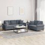 Juego de sofás con cojines 2 piezas terciopelo gris claro