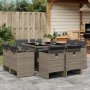 Set comedor de jardín con cojines 13 pzas ratán sintético gris