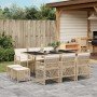 Set comedor de jardín con cojines 13 pzas ratán sintético beige