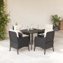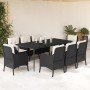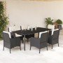 Set comedor de jardín 3 pzas con cojines ratán sintético negro