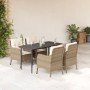 Set comedor de jardín 7 pzas con cojines ratán sintético beige