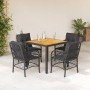Set de comedor de jardín 9 pzas y cojines ratán sintético negro