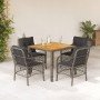 Este juego de comedor de jardín es una gran elección para comer al aire libre o simplemente para relajarte en el jardín, el patio o la terraza. Material duradero: El ratán de PE, también conocido como ratán sintético, es un material sintético resistente y de bajo mantenimiento que se parece al ratán natural. Es ligero, fácil de limpiar y se usa comúnmente para muebles de exterior debido a su durabilidad y propiedades resistentes a la intemperie.Experiencia de asiento cómoda: Estos muebles de exterior, completos con cojines acolchados gruesos, ofrecen una experiencia de asiento cómoda.Funda desenfundable y lavable: Estos cojines de asiento cuentan con fundas desenfundables para facilitar el lavado y mantenimiento. Superficie estable y fácil de limpiar: Esta mesa de jardín tiene una superficie de madera de acacia que es resistente, duradero y fácil de limpiar con un paño húmedo.Estructura robusta y estable: La estructura de acero con recubrimiento en polvo garantiza que el mueble de jardín sea resistente y estable para usarlo a diario al aire libre. Información útil:Para asegurarte de que tus muebles de exterior se mantengan hermosos, recomendamos protegerlos con una funda impermeable.