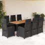 Set de comedor de jardín 7 pzas y cojines ratán sintético negro