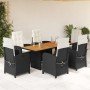 Set de comedor de jardín 9 pzas y cojines ratán sintético negro