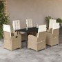 Set comedor de jardín 7 pzas con cojines ratán sintético beige