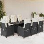 Set comedor jardín 7 pzas y cojines ratán sintético gris
