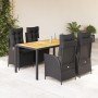 Set comedor de jardín 3 pzas con cojines ratán sintético negro