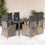 Set comedor jardín 7 pzas y cojines ratán sintético gris