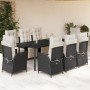 Set de comedor de jardín 7 pzas y cojines ratán sintético negro