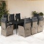 Set comedor jardín 7 pzas y cojines ratán sintético gris
