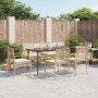 Este juego de comedor de jardín es una gran elección para comer al aire libre o simplemente para relajarte en el jardín, el patio o la terraza. Material duradero: El ratán PE, también conocido como ratán sintético, es un material sintético resistente y de bajo mantenimiento que se parece al ratán natural. Es ligero, fácil de limpiar y se usa comúnmente para muebles de exterior debido a su durabilidad y propiedades resistentes a la intemperie.Experiencia de asiento cómoda: Estos muebles de exterior, completos con cojines acolchados gruesos, ofrecen una experiencia de asiento cómoda.Funda desenfundable y lavable: Estos cojines de asiento cuentan con fundas desenfundables para facilitar el lavado y mantenimiento.Superficie de vidrio: La superficie de la mesa de exterior es de vidrio templado resistente y duradero, por lo que es fácil de limpiar con un paño húmedo y añade un toque de elegancia a tu espacio exterior.Estructura robusta y estable: La estructura de acero con recubrimiento en polvo garantiza que el mueble de jardín sea resistente y estable para usarlo a diario al aire libre. Información útil:Para asegurarte de que tus muebles de exterior se mantengan hermosos, recomendamos protegerlos con una funda impermeable.