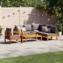 Este conjunto de sofás de jardín es el complemento perfecto para el jardín, terraza o patio, ya que proporciona un espacio confortable y acogedor para charlar con familiares y amigos o simplemente relajarte y disfrutar del aire libre. Material duradero: La madera maciza de acacia es un hermoso material natural. La madera de acacia es una madera dura tropical, densa, robusta y duradera.Superficie estable y fácil de limpiar: Esta mesa de jardín tiene una superficie de madera de acacia que es resistente, duradero y fácil de limpiar con un paño húmedo.Experiencia de asiento cómoda: Estos muebles de exterior, completos con cojines acolchados gruesos, ofrecen una experiencia de asiento cómoda. Funda desenfundable y lavable: Estos cojines de asiento cuentan con fundas desenfundables para facilitar el lavado y mantenimiento.Diseño modular: Este conjunto de muebles de exterior tiene un diseño modular, por lo que es completamente flexible y fácil de mover, para que puedas crear una disposición de muebles de exterior personalizada. Información útil:Para asegurarte de que tus muebles de exterior se mantengan hermosos, recomendamos protegerlos con una funda impermeable.