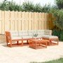 Set sofás jardín 5 pzas con cojines madera maciza pino blanco