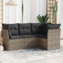 Set de sofás jardín y cojines 5 pzas ratán sintético gris claro