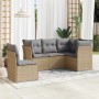 Juego de sofás jardín con cojines 6 pzas ratán sintético beige