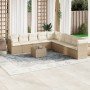 Set de sofás de jardín 9 pzas y cojines ratán sintético marrón