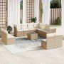 Set de sofás de jardín 11pzas con cojines ratán sintético beige