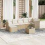 Set de comedor de jardín 7 pzas y cojines ratán sintético negro