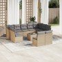 Set de sofás de jardín 11 pzas y cojines ratán sintético negro