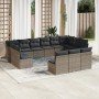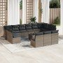 Set sofás de jardín 14 pzas con cojines ratán sintético negro