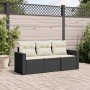 Set de sofás de jardín con cojines 3 pzas ratán sintético negro