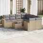Set de sofás de jardín 9 pzas con cojines ratán sintético beige