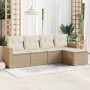 Set de sofás de jardín 6 piezas y cojines ratán sintético negro