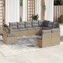 Set de sofás de jardín 11pzas con cojines ratán sintético beige