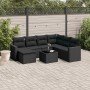 Set de comedor de jardín 7 pzas y cojines ratán sintético negro